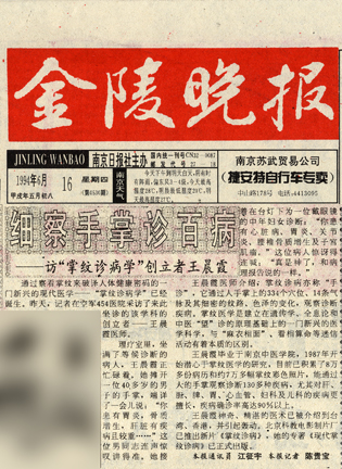 1994年6月9日《新华日报》刊登“掌纹诊病有奇医”