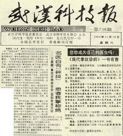 · 1994年3月6日《消费报》刊登“掌上乾坤悬壶济世”