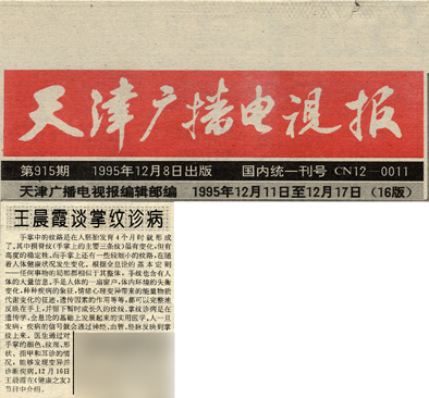 · 1995年第8期《妇女之友》刊登“掌纹诊病”一文。