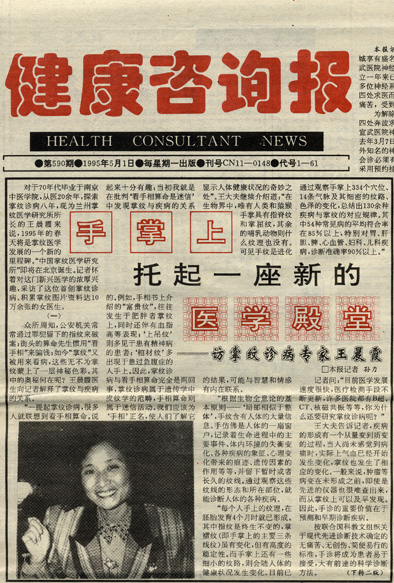 1995年5月1日,《健康咨询报》“手掌上托起一座新的殿堂”