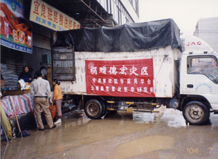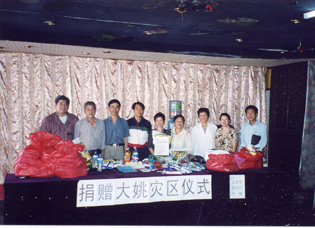 2004年7月8日,云南晨霞掌纹医学研究所捐赠云南德宏州灾区物资。