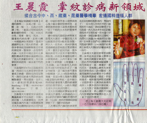 2005年10月14日《云南政协报》第七版,《掌纹诊病治病大夫——王晨霞》
